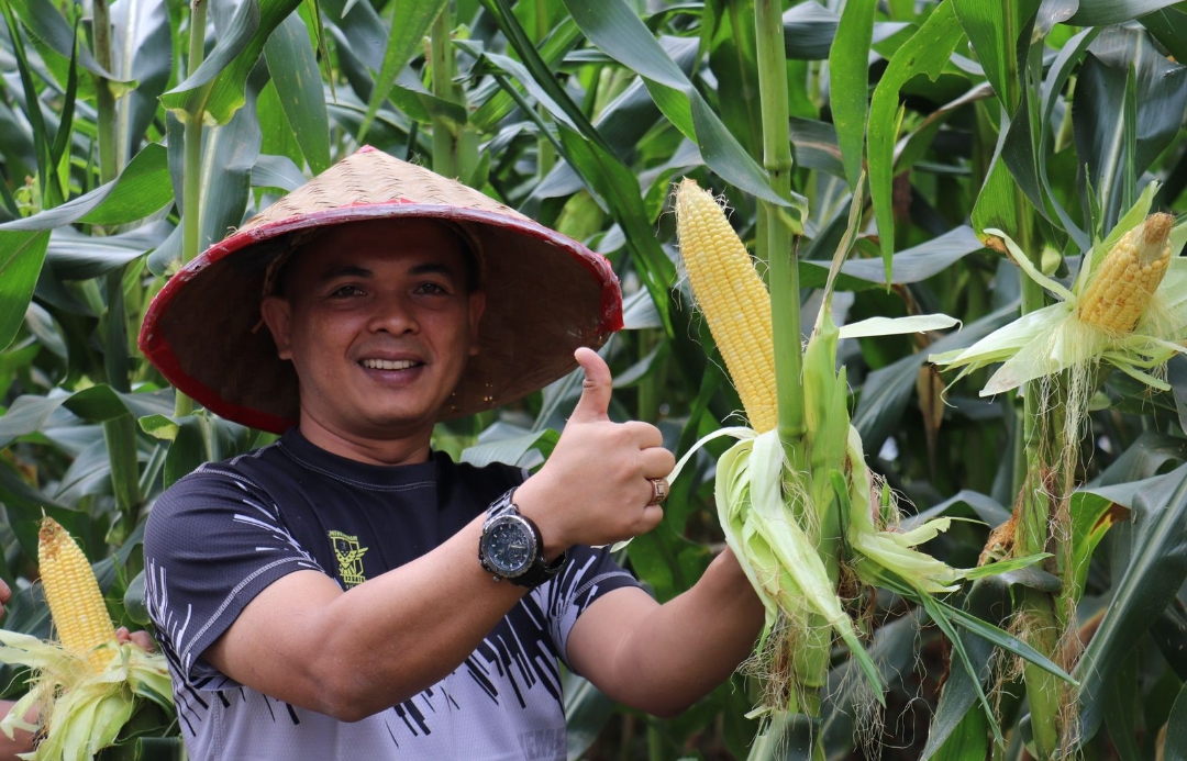 Ket Gambar : Kalaapas Rantauprapat (Tengah) Saat Panen Jagung.