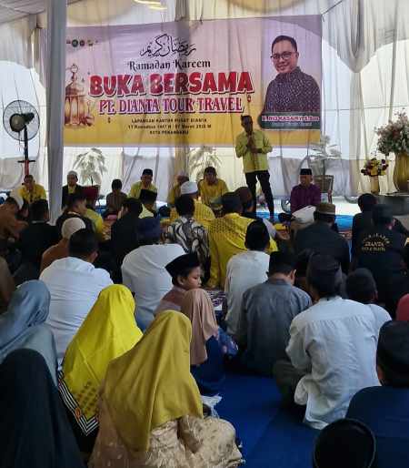 Pekanbaru,(SinarRiau.com) – Dalam menjalin silaturahmi dengan seluruh tim syiar PT. Dianta Tour Travel, managemant PT. Dianta Tour Travel (DNT) mengadakan buka bersama dengan seluruh keluarga tim syiar PT. DNT didepan halaman kantor PT. DNT, jalan Air Hitam, Kecamatn Bina Widya, Pekanbaru.