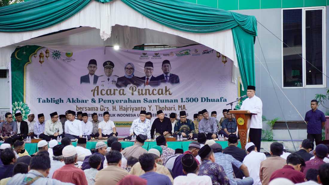 PEKANBARU,(SinarRiau.com)– Universitas Muhammadiyah Riau (UMRI) menggelar Tabligh Akbar sebagai puncak rangkaian kegiatan “Ceria Ramadan 1447 Hijriah” di Kampus Utama UMRI, Jumat (13/3/2026). Acara yang berlangsung menjelang berbuka puasa ini tidak hanya menjadi ajang spiritual, tetapi juga momentum kepedulian sosial dengan penyaluran santunan kepada 1.500 kaum dhuafa.